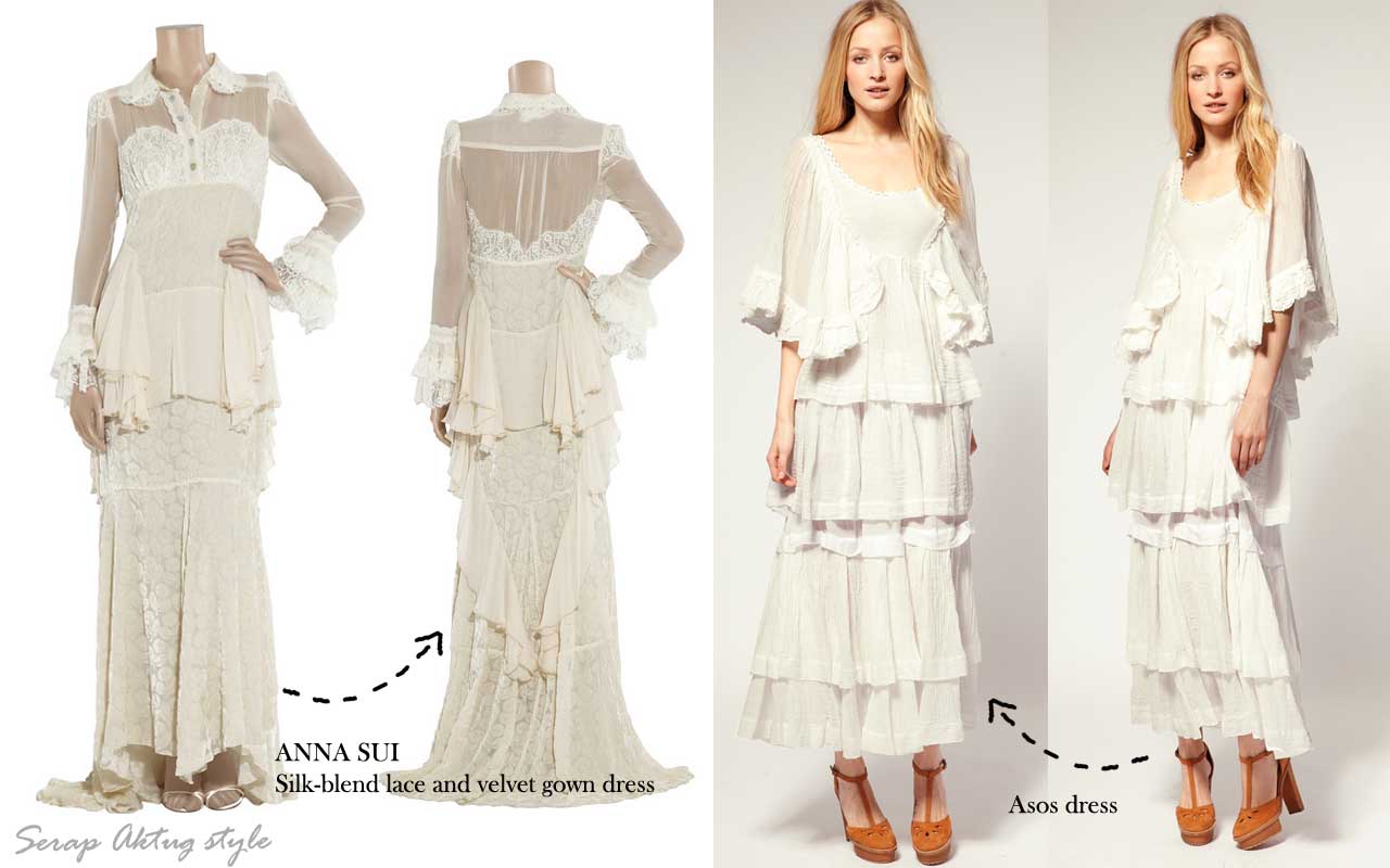 Silk-blend lace and velvet gown Anna Sui dress from THE OUTNET, Sestra Moja Exclusive Bianca Layered Frill Dress from Asos